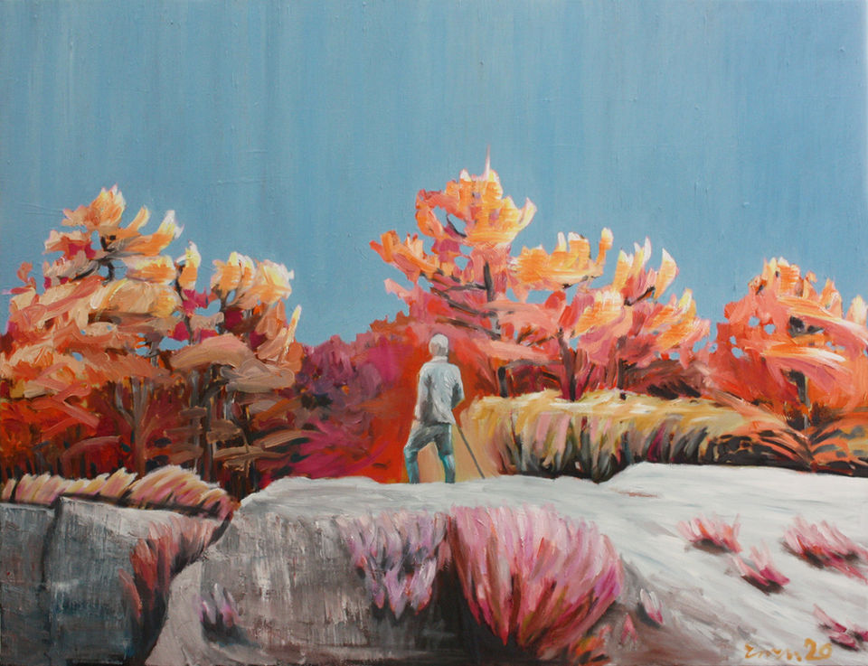 Mostly oil on canvas. You can klick on the images to enter a lightbox mode. For the exact dimensions, please look at the descriptions in the lightbox.